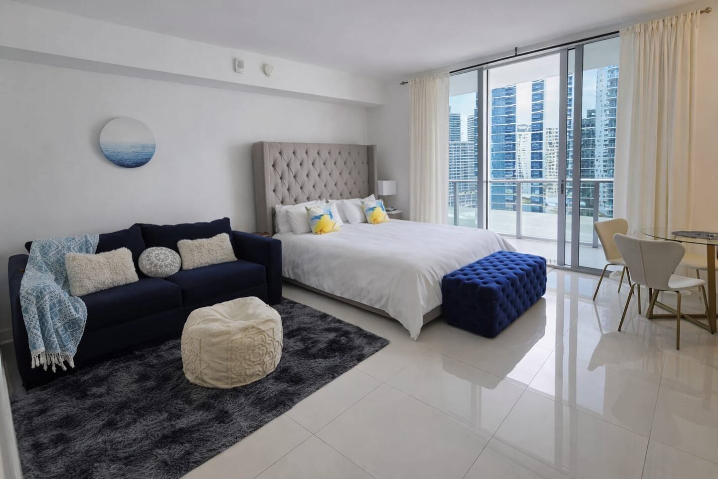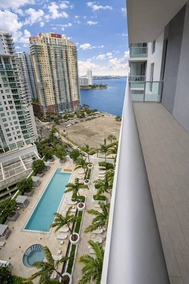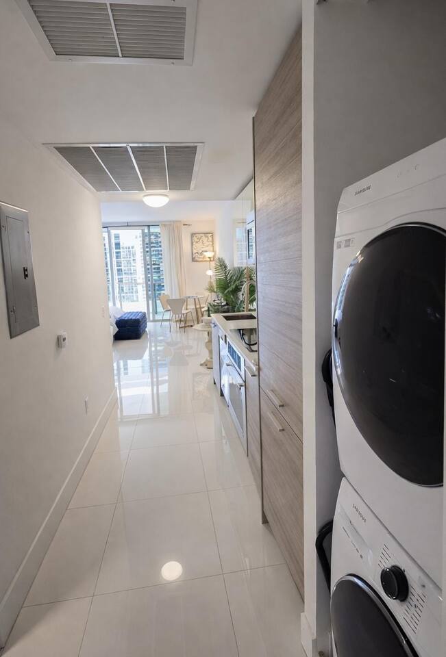 Step into a modern Brickell high-rise retreat designed for comfort, style, and unforgettable views. – 21st-floor escape with bay/skyline views – Private balcony for coffee, sunsets, and fresh air – Floor-to-ceiling windows with abundant natural light – Queen bed with hotel-style linens – Sleek modern kitchen with stainless appliances and essentials – In-unit washer/dryer for easy longer stays – Walk-in closet with generous storage – High-speed fiber-optic internet for streaming and remote work – Clean, contemporary finishes throughout