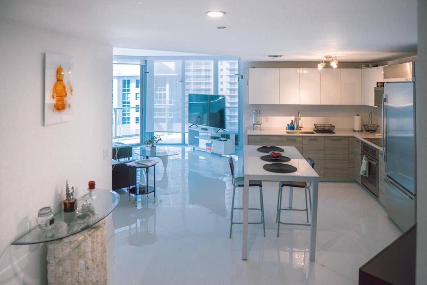 As an Airbnb guest at BrickellHouse, you will have access to all the amenities the building offers, such as the heated pool, hot tub, fully-equipped gym, movie theater, and terrace with panoramic views of the ocean and city.